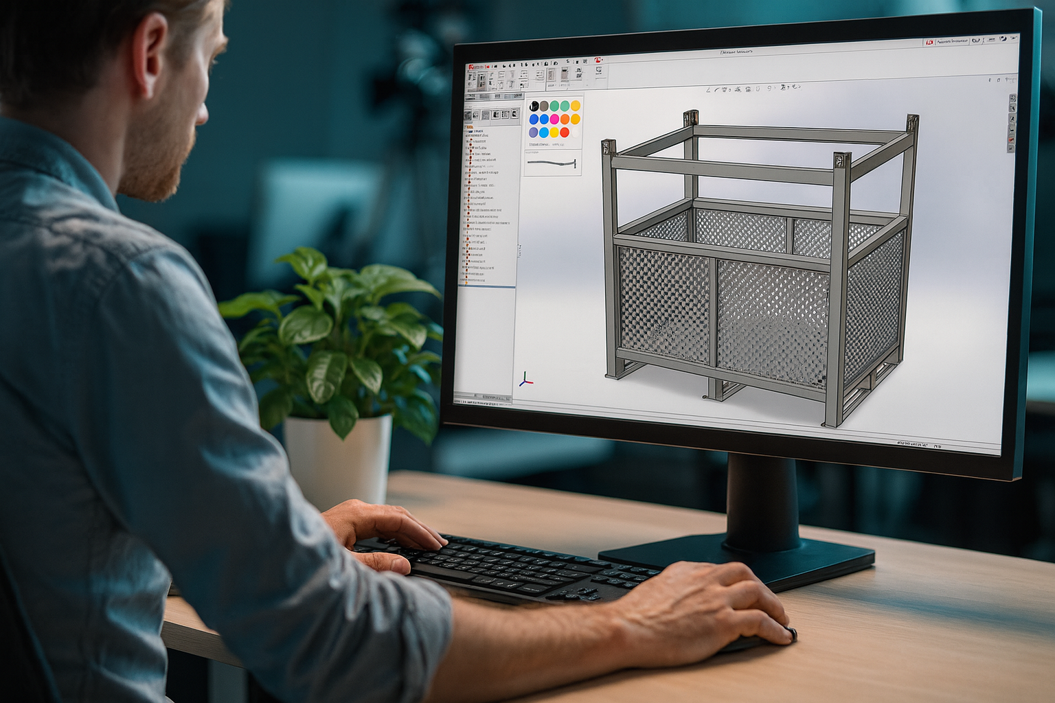 At Lowe Stillages and Cages, we use the latest SolidWorks 2025 3D CAD software to design bespoke storage solutions, such as custom stillages and cages tailored to your needs. Our clients typically provide technical requirements or share part files (like STEP/.stp or other CAD formats), and our experienced design team transforms these into a custom stillage solution that meets every specification. We pride ourselves on precision and collaboration – by involving you in the design process with concept visuals and feedback loops, we ensure the final product is exactly what your business requires.